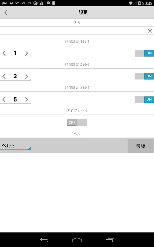 プレゼンテーション等で、あらかじめ設定した3つの時刻でベルを鳴らすことができます。