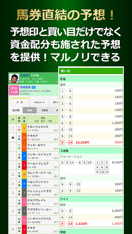 * Forecasts (forecast marks, buy eyes & fund allocation) can be viewed from 100G per race. (1G = 1 yen)