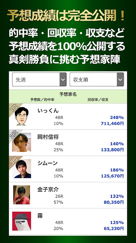 In "Professional tipster MAX", all the results of professional tipsters are covered with glass and information disclosure is thorough, and many fans are gained by getting serious predictions of the Gachinko game. From the favorite party to the Oana party, the predictions of professional tipsters with abundant individuality are registered one after another on the dates of central horse racing and local horse racing, and strongly support your horse racing prediction.