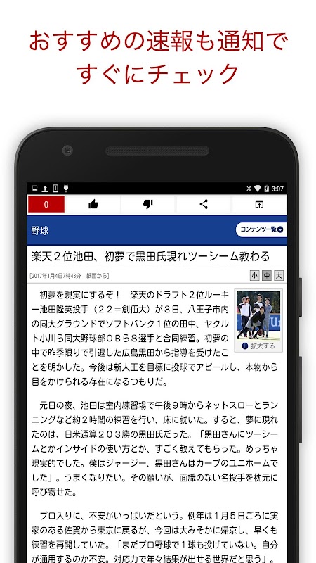 プロ野球の試合時間30分前に通知を受け取ることや、朝昼晩ニュース通知もできます。