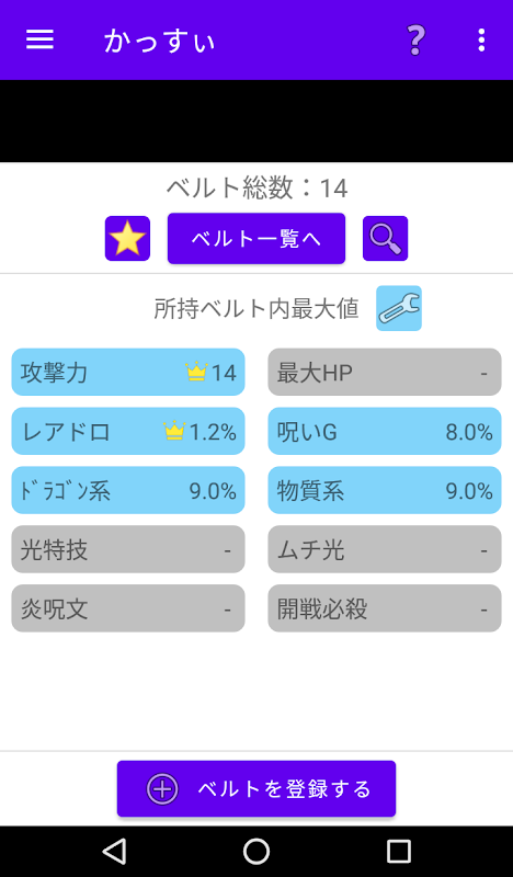 It is a tool to manage "Pyroxene Belt" and "War God's Belt" of Dragon Quest X. By registering the information of your belt, it will be easier to find out what kind of belt you had.