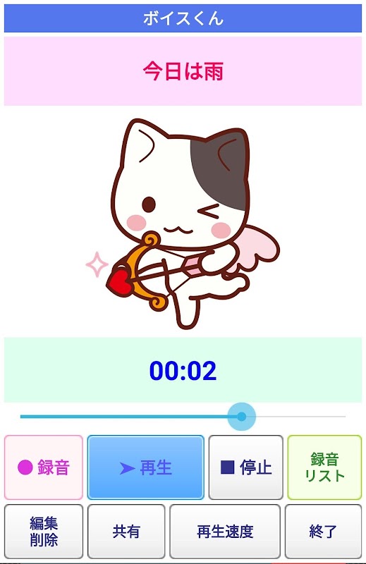 Simple voice memo application, is the "voice-kun".Share saved in aac files is also possible.