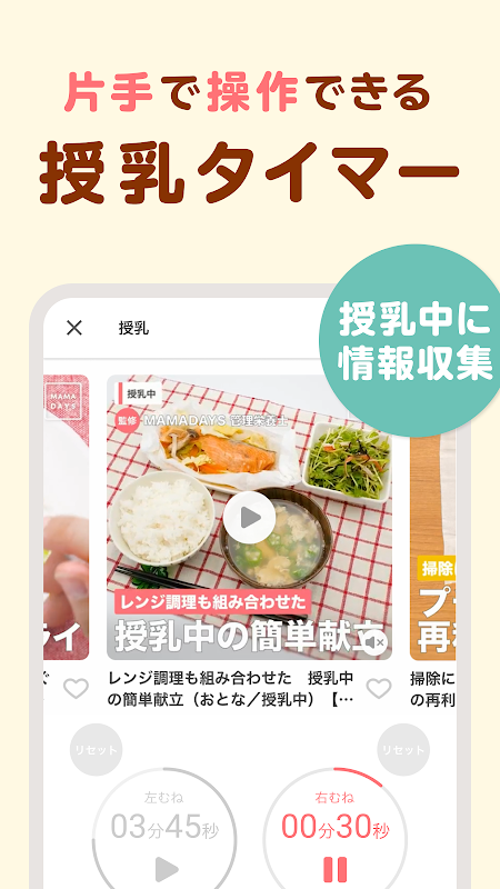 Parenting videos are played automatically, so you can collect information while breastfeeding.