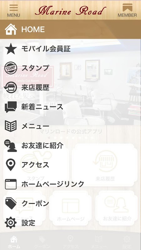 このアプリでは、マリンロードの公式アプリの色々な情報やアプリユーザー限定のお得なサービスが手に入ります!