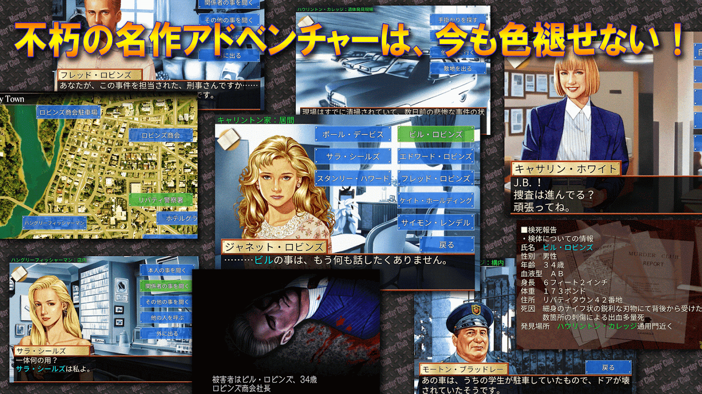 Retro game of the monument mystery adventure game "Murder Club (Murder Club)" is approaching a puzzle to you Become a free Android app!