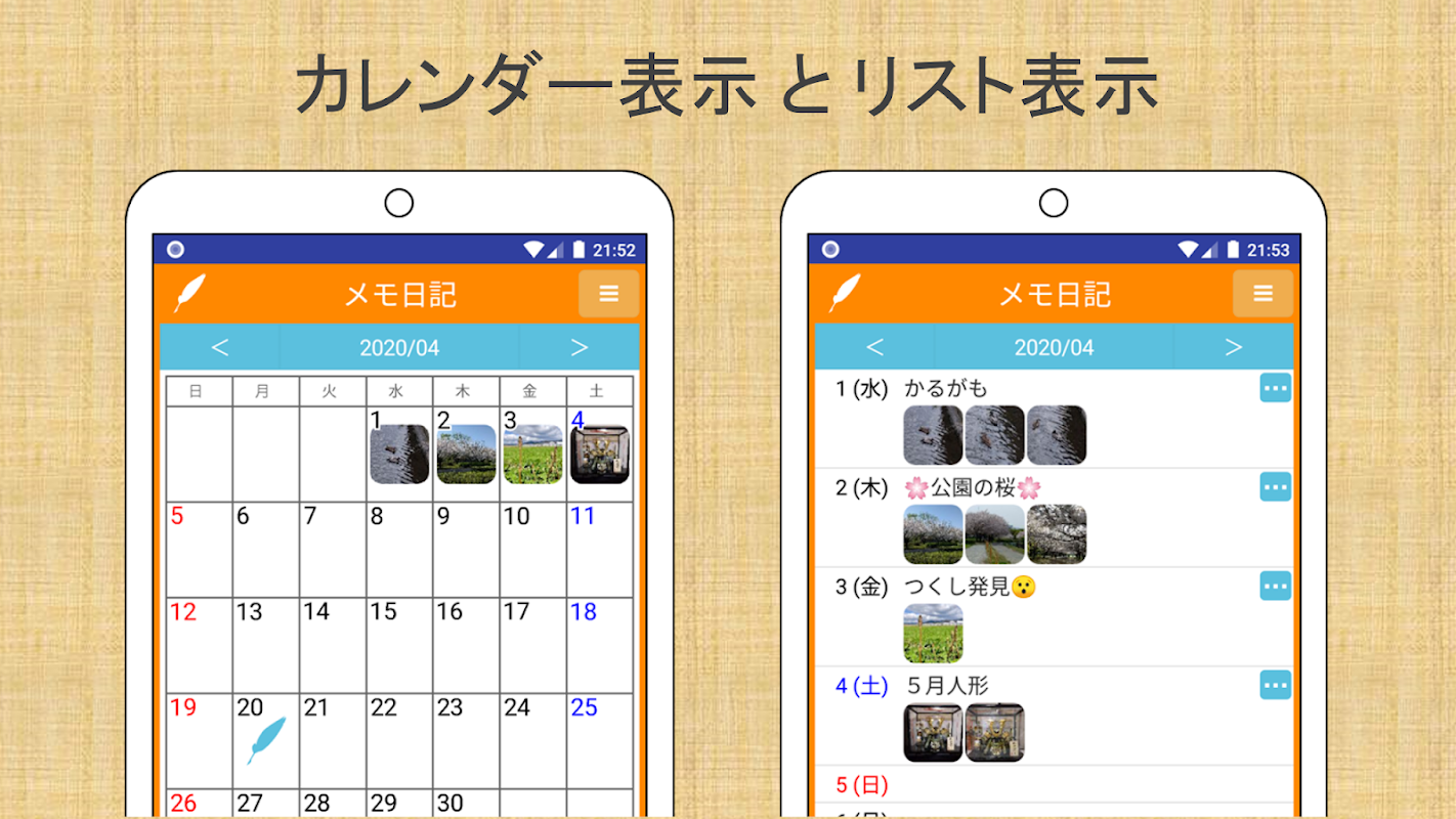 About メモ日記(カレンダーに写真を添付できるシンプルな日記帳)