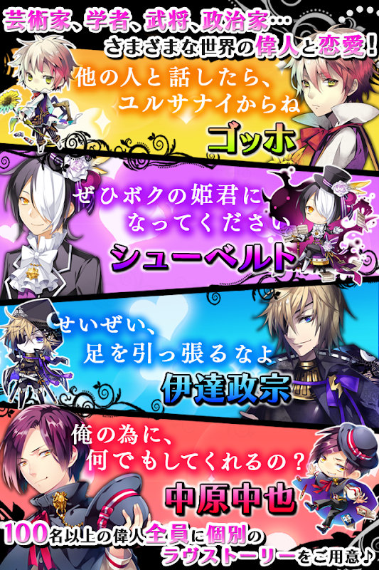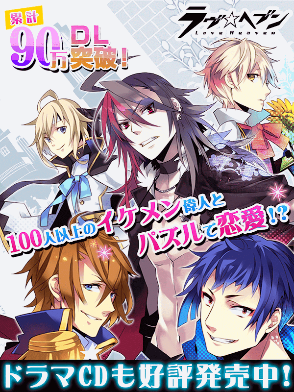 300人以上の【イケメン偉人】と恋愛!?全キャラ専用恋愛シナリオ有り!新感覚パネルタッチパズル×乙女ゲーム【ラヴヘブン】にあなたもハマるはず♪