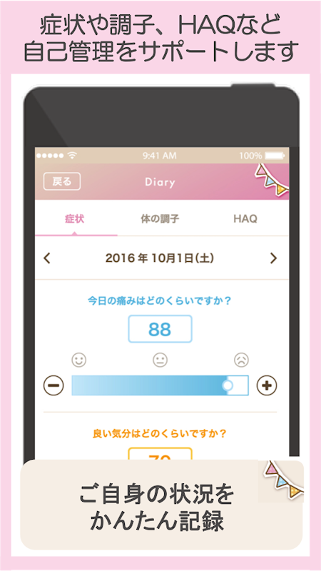 "Arthritis Diary" is, for patients with rheumatoid arthritis, and record the symptoms such as pain, is a smartphone app that helps to tell the medical staff.