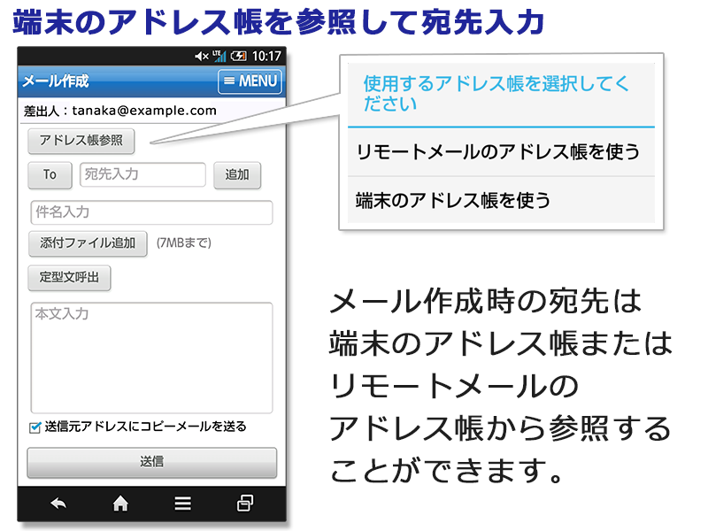 ・メールの宛先を端末のアドレス帳から選択できるようになりました。