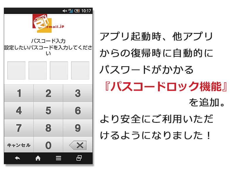 ・アプリの起動にロックをかけるパスコードロック機能を搭載しました。