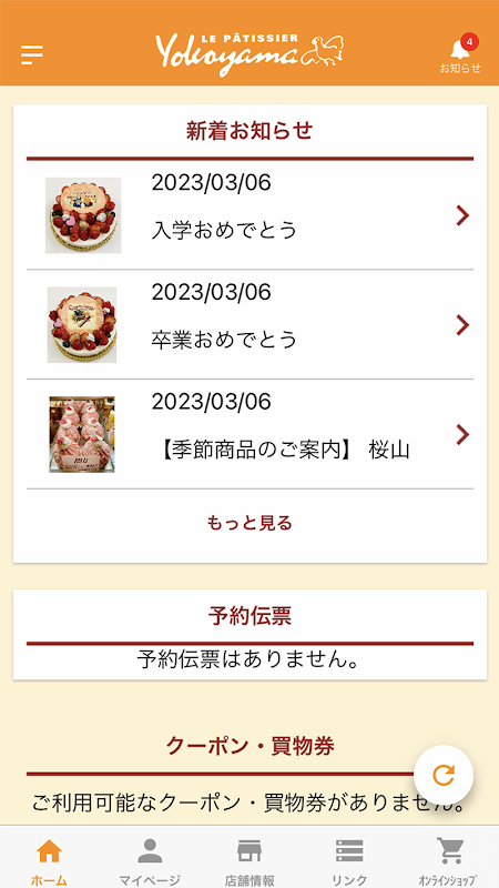 You can check the latest store information, member information, discount coupons, shopping tickets, and reservation information.