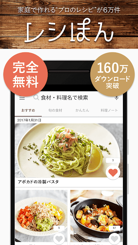 器…)などを入力するだけで探していたレシピがきっと見つかります。