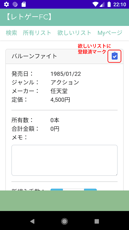・ Since there is a memo for each game, you can record the date of acquisition and impressions.