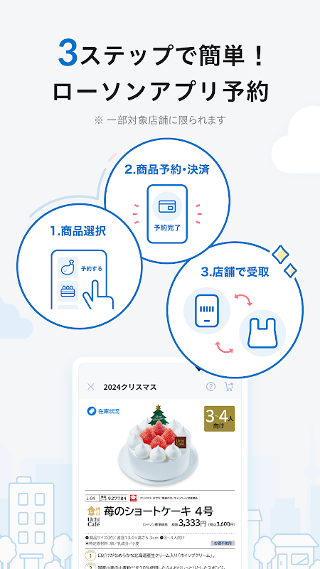 ・You will be able to apply for pre-order items such as Christmas foods and New Year's food via the Lawson app.