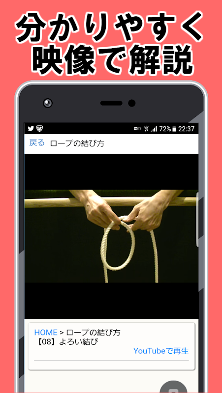 【防災アプリ】ロープや縄の結び方を映像集録しております。いざという時の防災対策として。また日常生活や引っ越し、消防士、建築、トラックの運転手さんにもおすすめ。