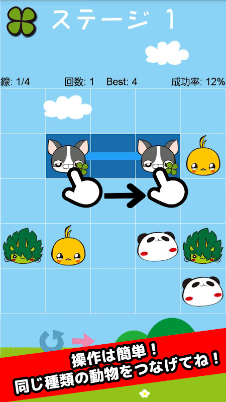 パンダのたぷたぷの一筆パズルアプリ登場!操作は簡単!全部のマスを通りながら、同じ種類のたぷたぷの仲間をなぞってつなげよう!