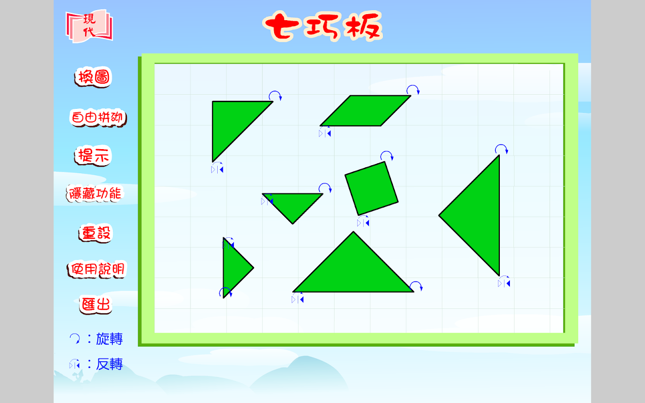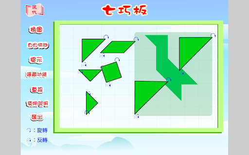 Use tangrams to build freely, so that students can master the skills of graphic building. The program also provides many examples of interesting patterns to enhance the interest of learning.