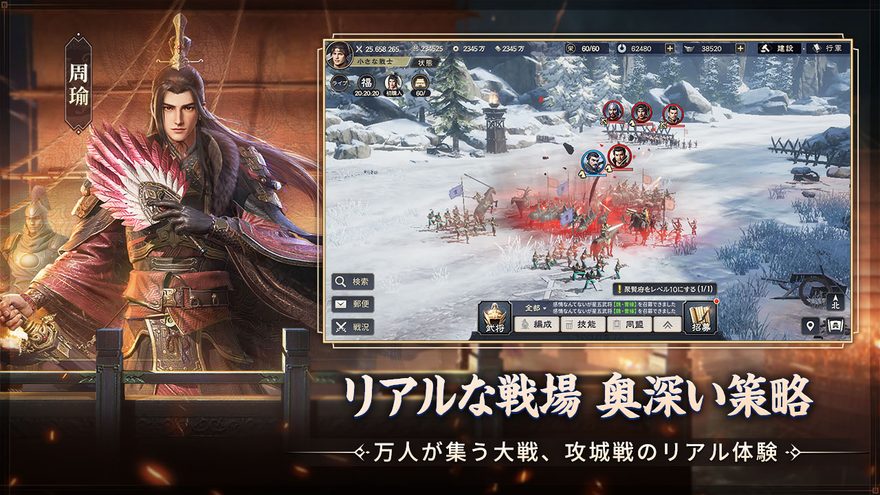 You can control the advance of your troops in real time on a full-scale battlefield! You can change your marching route at any time, toy with the enemy with a surprise attack, or decide the battle at once with an ambush or pincer attack!