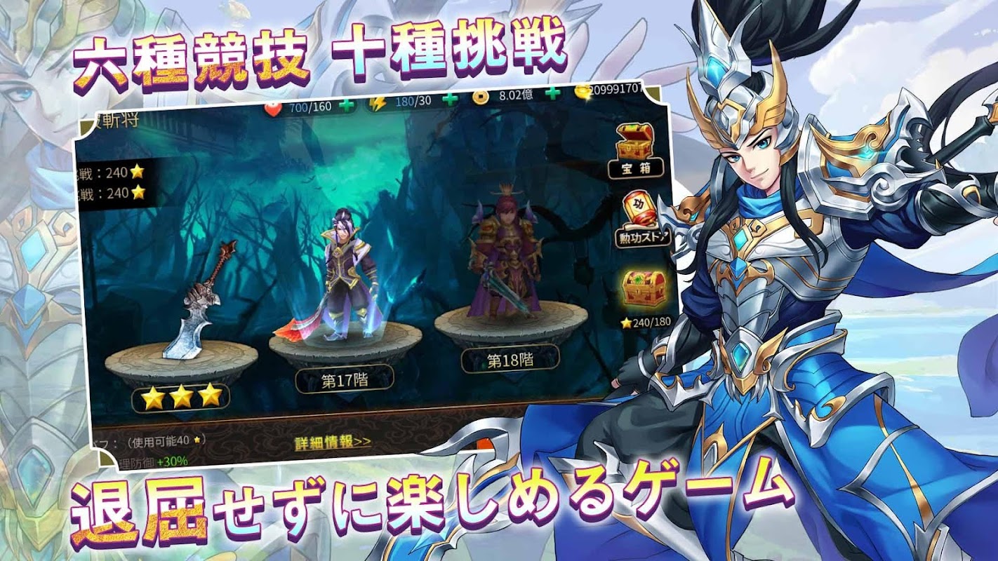 「三国戦神記」は三国を題材として制作され、戦闘と英雄育成に重点を置き、多種なスキル・装備・ペットなどの要素を含む3Dアクションカードゲームであります。