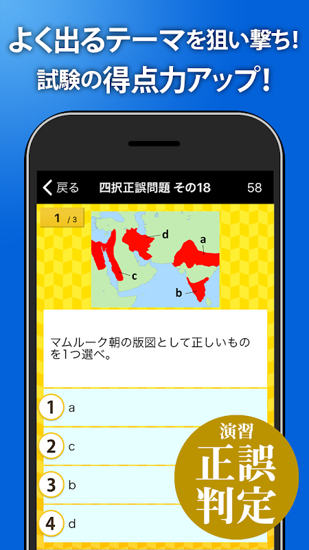 This app ``World History Questions and Answers & Exercises with Explanations (High School World History/University Entrance Examination Common Test World History Problem Collection App)'' is part of the popular learning app ``Hanpuku Series'' which has been downloaded over 50 million times in total.