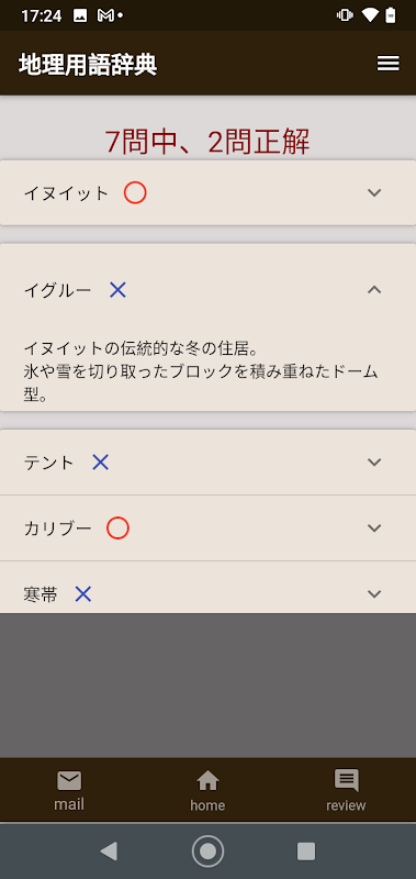 A free learning app that adds a term confirmation test to the glossary of the junior high school geography field