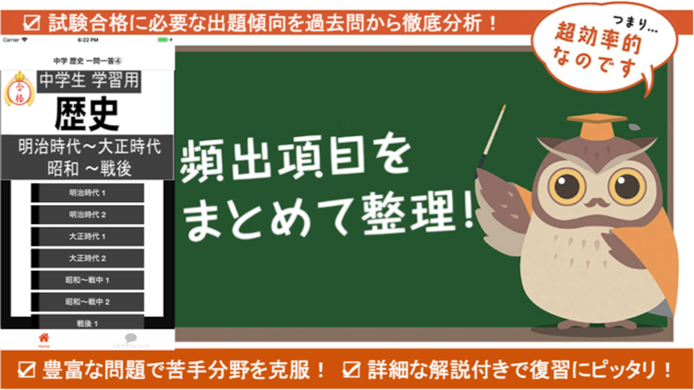中学生が、高校受験や定期テストに向けて、ポイントを押さえてなるべく楽に、歴史を勉強することを目的として作成したアプリです。