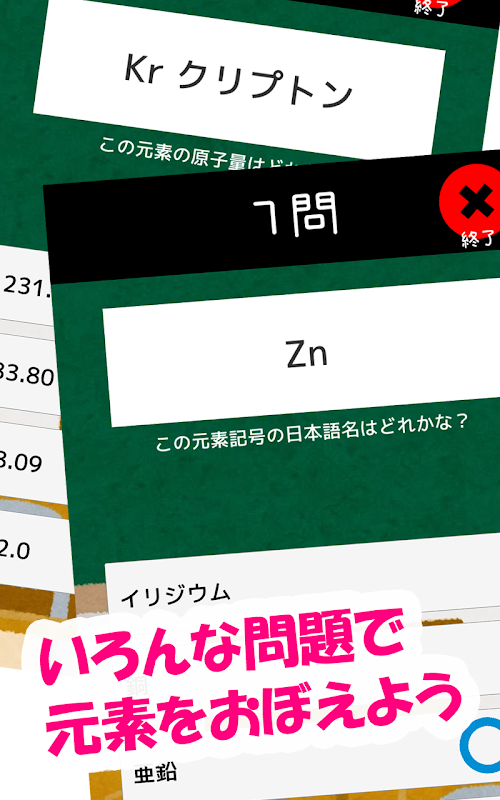 元素記号をおぼえよう:理科化学の学習に便利な学習クイズアプリ 1.3