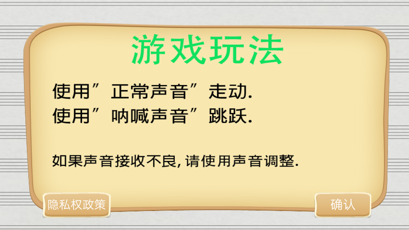 八分音符喵非常的简单玩。 除了在菜单和级别里导航以外,您不需要任何额外的视频触摸来操作!但是,您唯一方式来控制喵喵就是您的八分音符声音的嘶吼!您的声量幅度将决定它跳跃的高低。帮助它克服各种挑战,让它能达到他亲爱的音符吧。