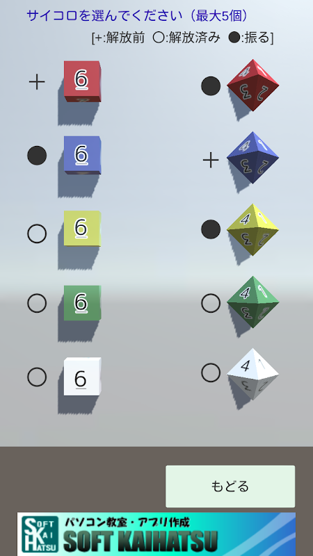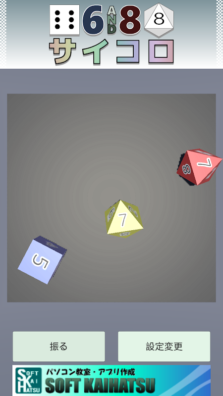 ・六面体と八面体のサイコロを同時に五個まで振ることができます