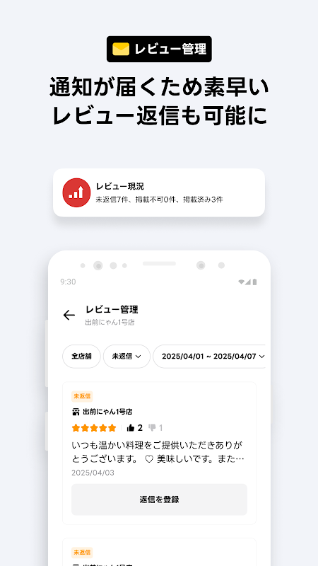 For Demae-kan member stores - Efficient store management is possible with the manager app!