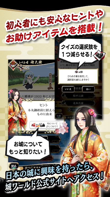 選 ん Choose a castle that you can challenge and challenge the quiz.