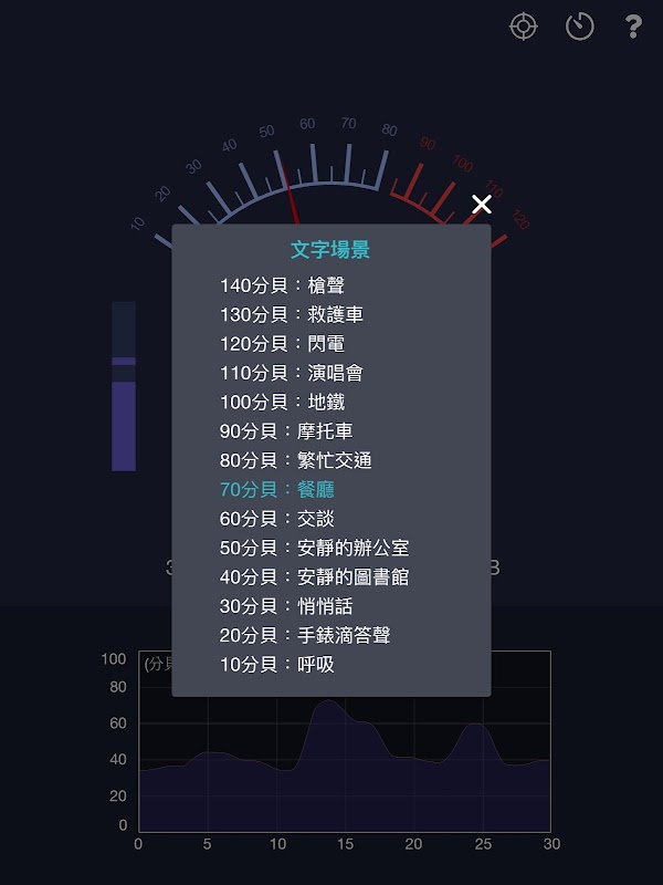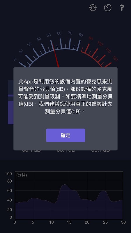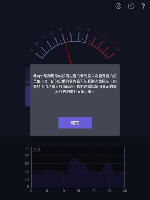 分貝計 & 聲級計利用您的設備內置的麥克風來測量聲音的分貝值(dB)。
