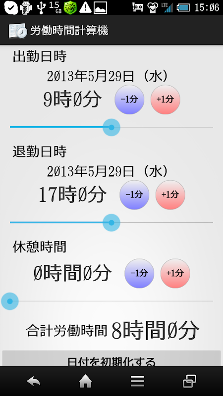 労働時間の計算ができるシンプルなアプリです。