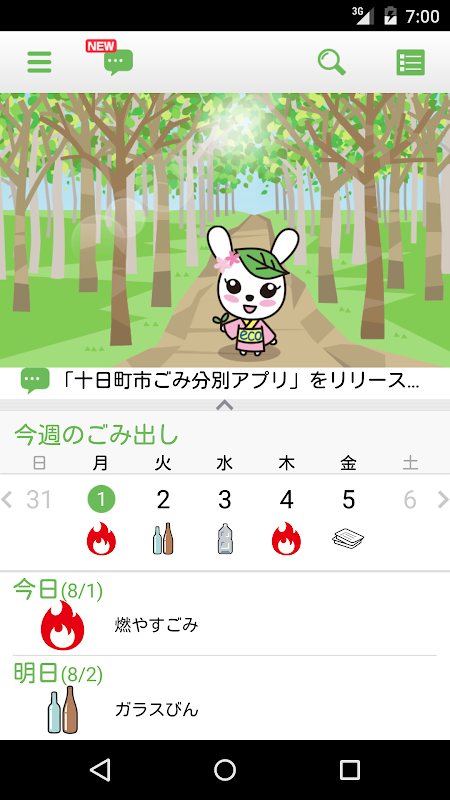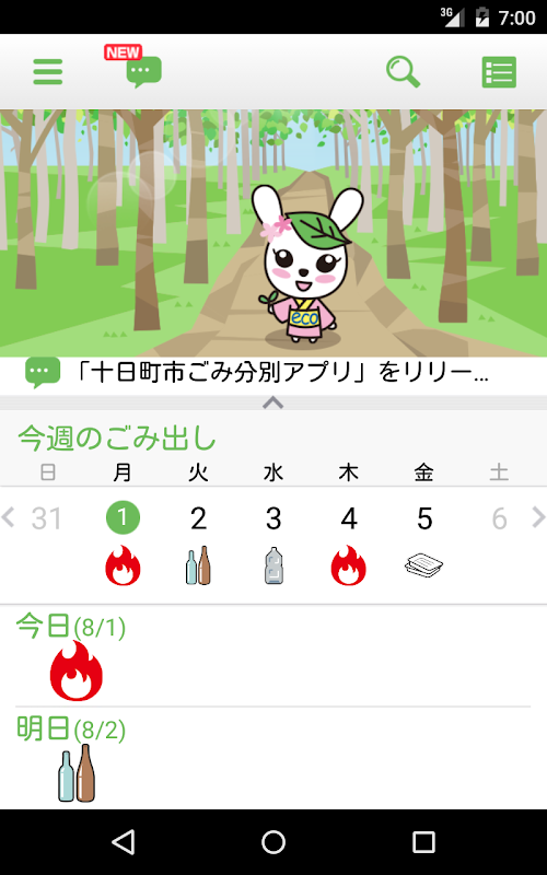 Today and tomorrow, every week, you can see immediately in three patterns by one the garbage collection schedule screen of each month.