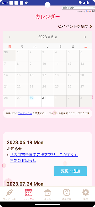 It has a vaccination scheduler function that automatically calculates and corrects complex vaccination schedules, a maternal and child health handbook function that records the growth of your child, and a child-rearing information distribution function.