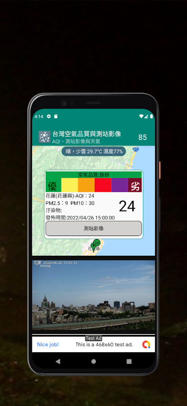 提供台灣即時空氣品質指標各測站資訊、即時影像與天氣。