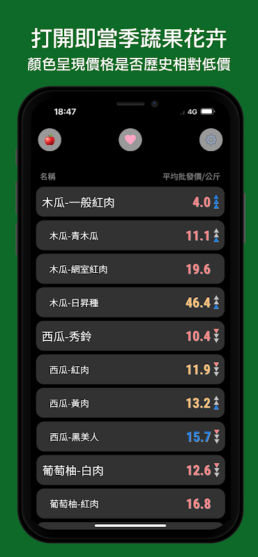 Are you often confused about prices when shopping for groceries? Based on the wholesale market data of the Council of Agriculture, this app provides price information on fruits, vegetables, fishery products, meat, etc. to help you quickly determine whether the price is good for the season and spend smartly!