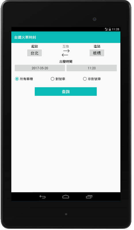 "Taiwan Railway Train Time" has 5 major features, allowing you to quickly check train times