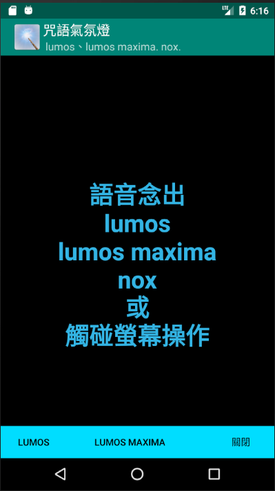 模仿魔杖語音施咒開啟手機照明。觸發面板照明或手機閃光燈照明的功能。語音辨識三個咒語觸發: