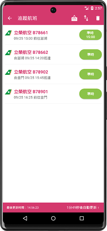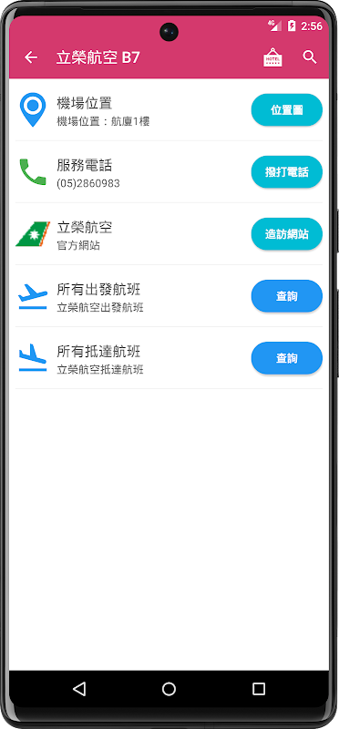 Supports real-time flight status tracking query of Chiayi Air Terminal (Chiayi Water Airport)