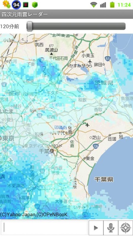 As well as the current state of rain clouds, you can see any until 60 minutes after the 120 minutes ago.