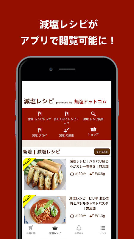 This is the official app of ``Unsalted.com'', one of the largest stores specializing in low-sodium foods in Japan. We have over 200 types of low-sodium and additive-free foods. We bring you low-salt recipes and useful salt-reducing tips!