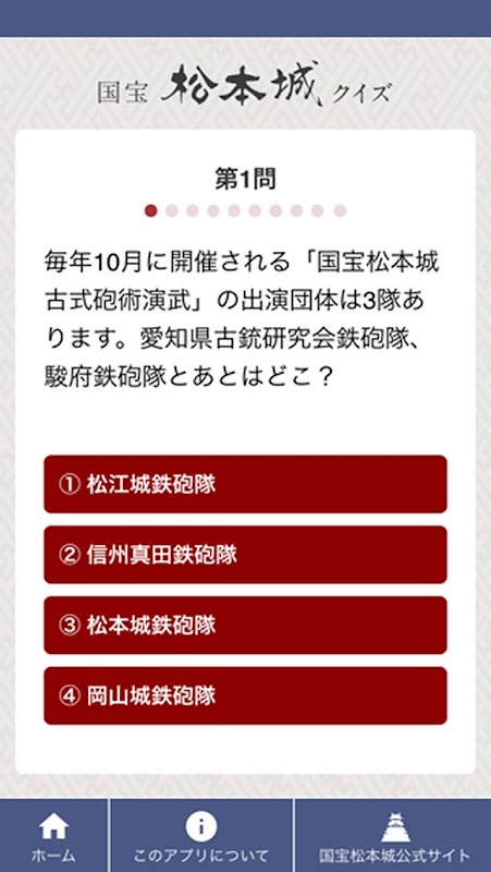 「国宝松本城クイズ」は、国宝松本城に関するクイズアプリです。