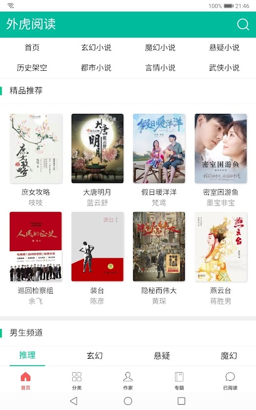 The Waihu Reading System adopts a user-friendly interface and a full-screen reading method without setting. The software categorizes various literary genres into each system directory, and it is convenient to browse and read after opening the Waihu reading software. The operating platforms currently supported by waihu reading system are: Android mobile phones, tablets and other device platforms with Android system installed.