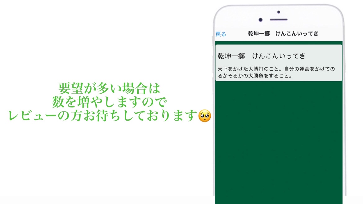 このアプリでは人気が高い四字熟語をまとめたアプリとなっております。