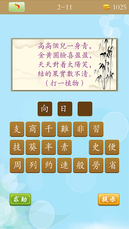 天天猜謎語是壹款猜謎語的遊戲,支持簡體和繁體字。在遊戲中包括了植物、動物、自然現象、生活用品、文具、成語、字謎的多個種類,經過精心的編排,能全面滿足讀者的需要。