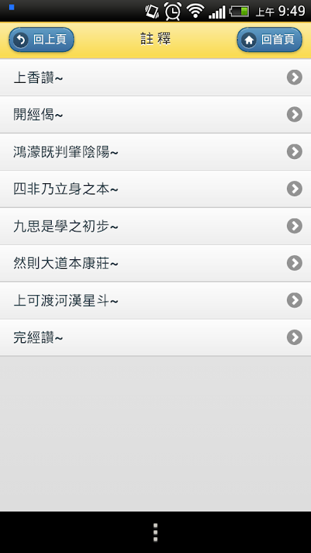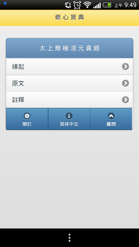 分別有緣起、原文、註釋選項,同時可切換簡體與繁體文字內容。