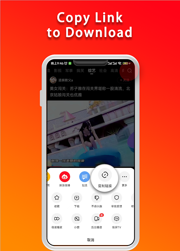 1. Find the video you want to download on the Kankan Video app, click to share, and select the copy link
