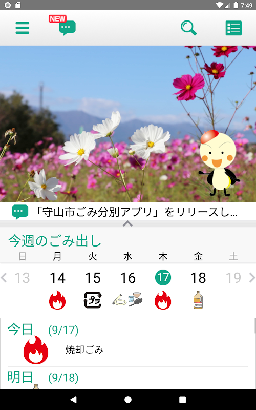 Moriyama City has released an application that allows you to easily check various information about garbage, such as the garbage collection date, how to dispose of garbage, precautions when disposing of garbage, a garbage separation dictionary, and frequently asked questions, using a familiar smartphone. ..