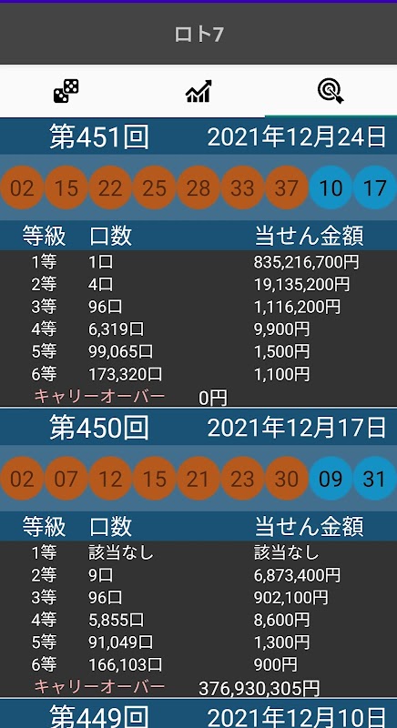 Winning number confirmation (LOTO7, LOTO6, Mini Lotto, Numbers 3, Numbers 4)